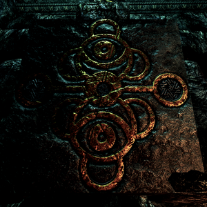 The Huérgar, much like the Shinarians, appear to favor geometric designs and the use of copper-like or golden metals. This was perhaps demonstrated best through a sigil or symbol found at two of the inner gates within the Mouth of Gal Barag prior to The Irruption which incorporates a unicursal hexad knot also observed in Shinarian ruins.